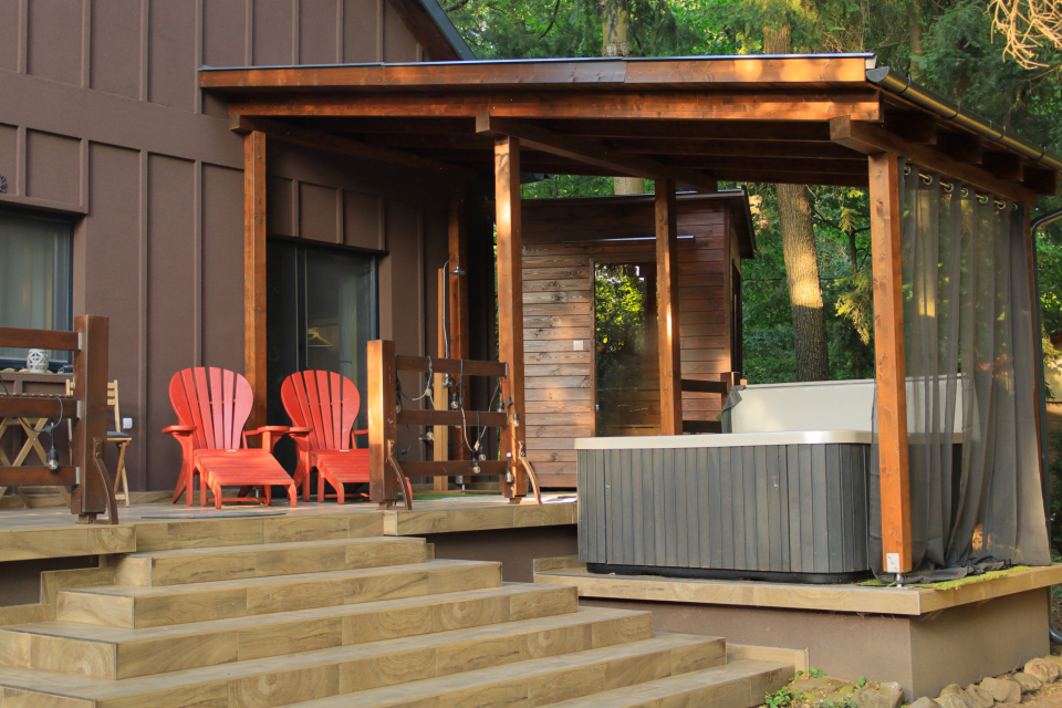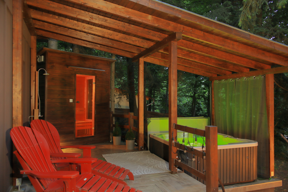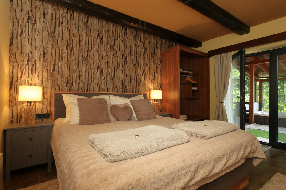 A legnagyobb élményt talán a saját wellness részleg nyújtotta számunkra. Már az első este kipróbáltuk a jacuzzit: a színes LED-világítást kapcsolgatni és a fúvókák erősségét állítgatni önmagában is szórakoztató volt. Kettesben, pezsgőt kortyolva lazítani a habokban romantikus pillanatokat jelentett. A teraszon szauna is található, amit mi most nem vettünk igénybe. A hálószobában egy rendkívül kényelmes boxspring ágy biztosította a tökéletes éjszakai pihenést.