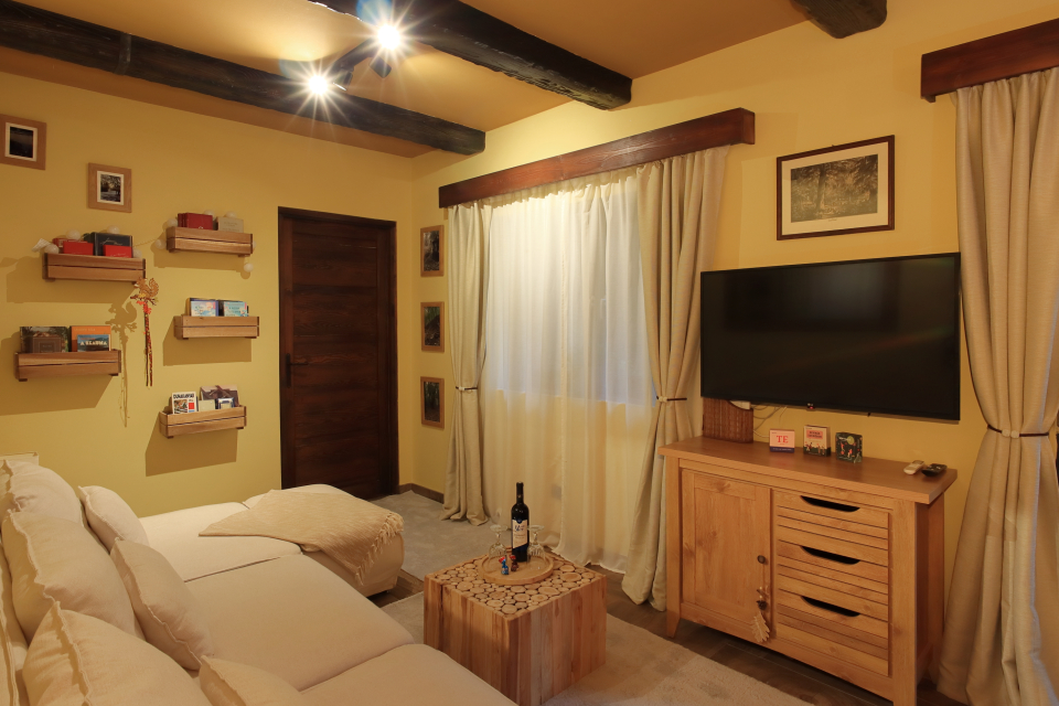 A ház minden részletében igényesen kialakított. A belső tér rendkívül barátságos, a falak meleg, sárgás árnyalatai és a hangulatos világítások nagyon otthonossá teszik a helyet.