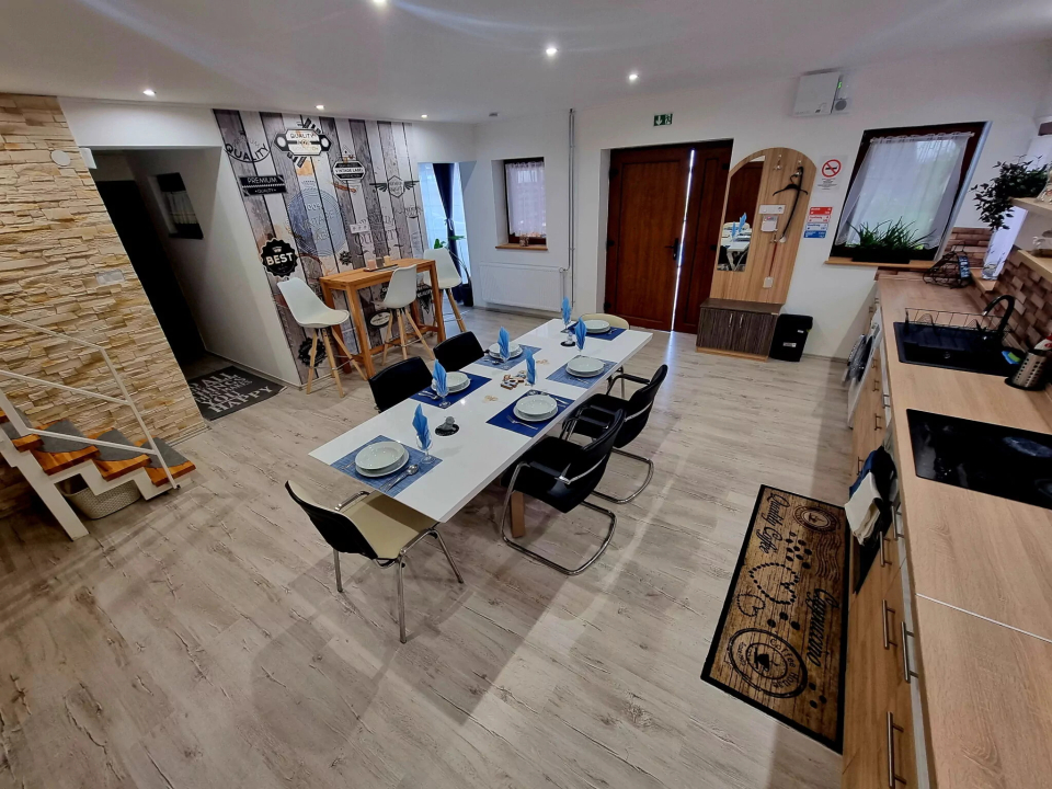 Jól felszerelt konyhánkban megtalálható darálós kávéfőző, vízforraló, kenyérpirító, szendvicssütő, botmixer, mikró, etetőszék.