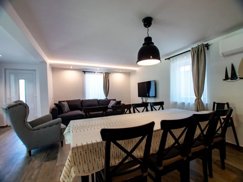 A nyaraló minden szobája és a nappali hűtő-fűtő klímával van ellátva, az ablakokat szúnyogháló védi. Az épület teljes egészében bababarát, így kisgyermekes vendégeink számára is ideális. A zárt parkoló három autó kényelmes parkolását biztosítja. Nyaralónk kisebb cégek csapatépítő programjaihoz is kiváló helyszínt biztosít. Háziállatott nem áll módunkban fogani!