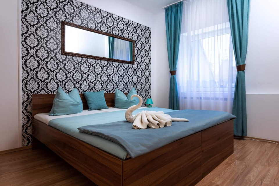 Tiszta szobákkal, kényelmes és nagy ágyakkal, új berendezésekkel várjuk Önöket. Két nagyon színvonalasan felszerelt konyhát és konyhafelszereléseket biztosítunk vendégeink számára. Deluxe 2 fős apartmanunk 1 hálótérrel elnevezésű szobánk egy akadálymentesített apartman, melyet mozgáskorlátozott vendégek részére is ajánlunk.