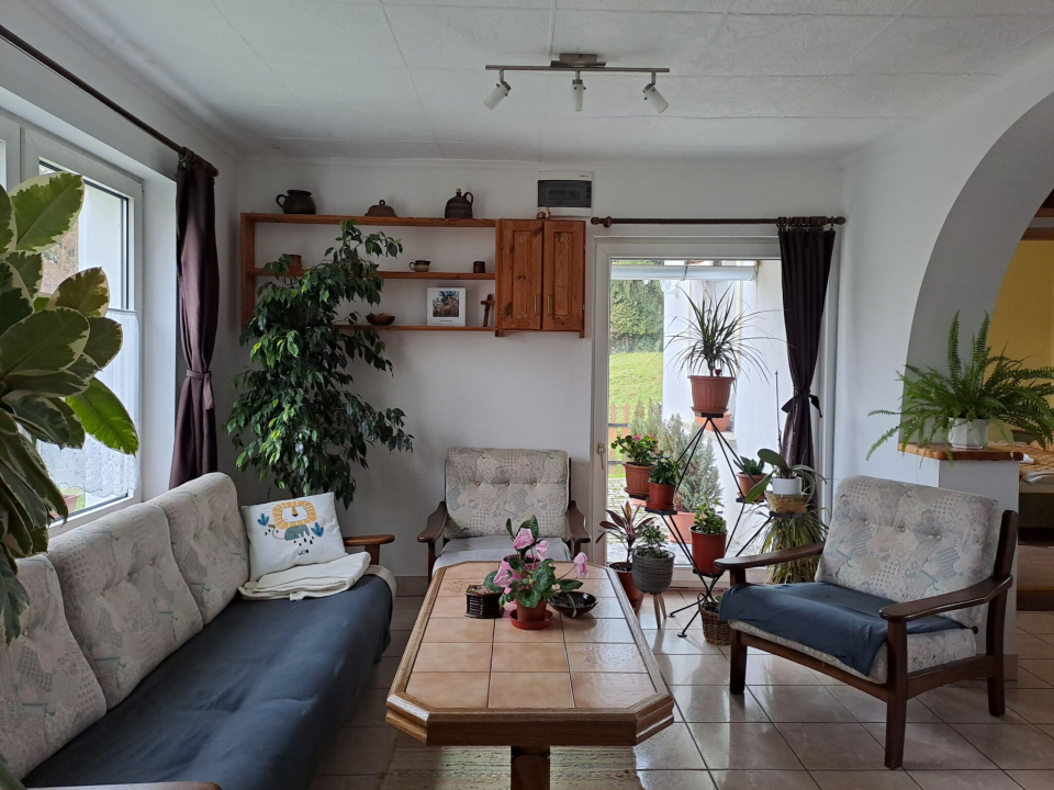A vendégházban 2 szoba, egy konyha, egy nappali, egy fürdőszoba és két terasz található. Konyha és a vendégház teljes felszereltségű. (mikro, tűzhely, sütő, vízforraló, kenyérpirító, kávéfőző,mosógép, stb,)