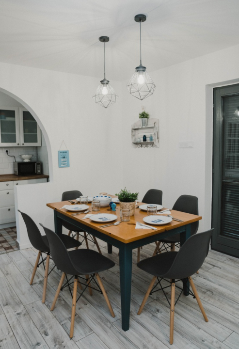 A megvalósítás során igyekeztünk becsempészni a víz közelségének hangulatát a belső terekbe is, így teremtve egy praktikus, de mégis otthonos szálláshelyet. Rengeteg természetes anyagból készült kiegészítőt szereztünk be, és a házban talált evezőket is megmentettük, így teremtve harmonikus egységet a hagyományos arculat és a stílusos modernség között. Legtöbb berendezési tárgyunk kiválasztása közben nagy figyelmet fordítottunk a kényelem és praktikum ötvözésére, kiváló minőségű matracok, designszobák, teljesen felszerelt konyha fogadja a betérőket.
