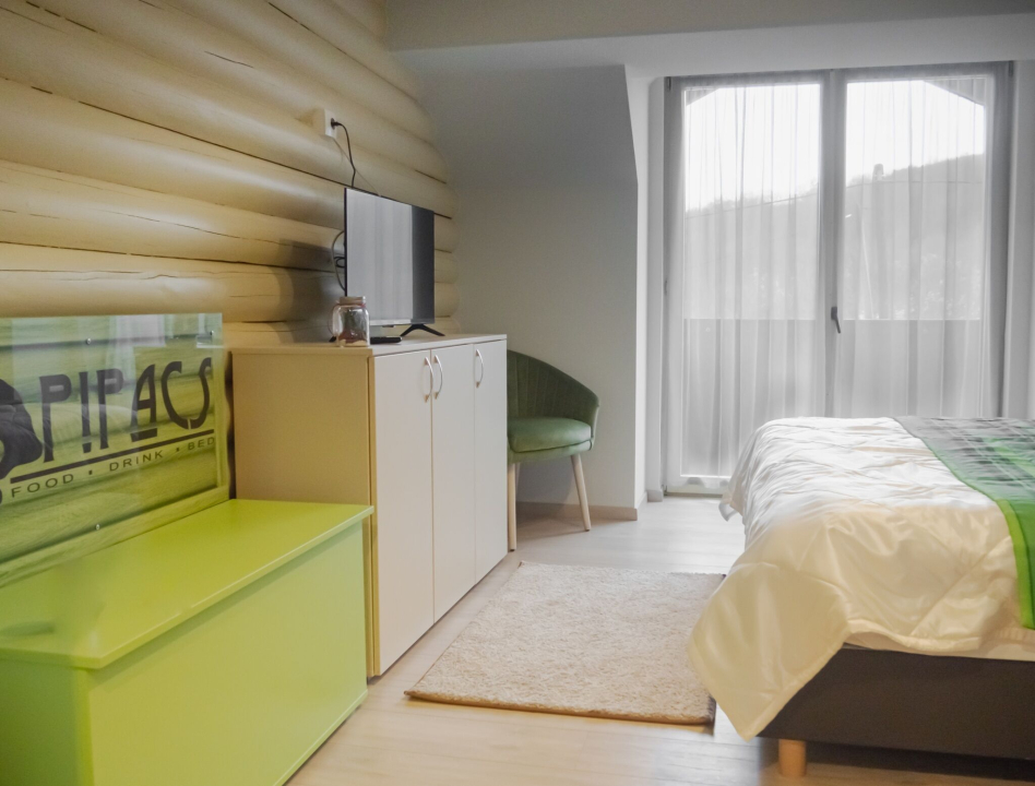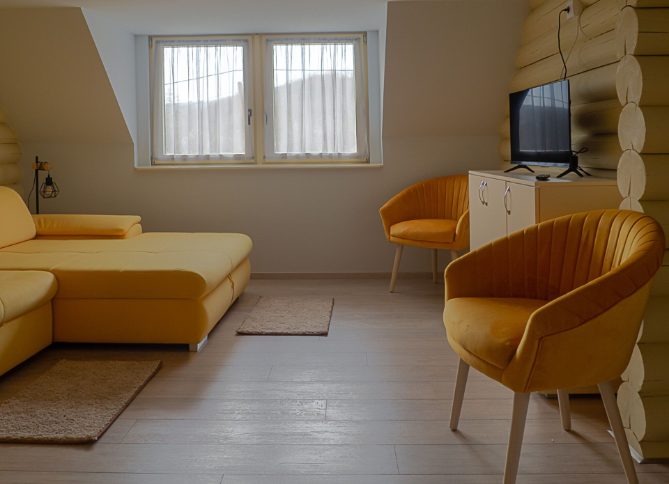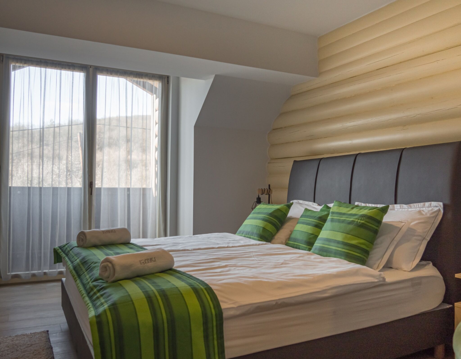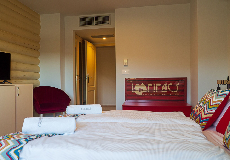 1 db családi (két légterű) szoba, mely egy franciaágyas hálótérből és egy pótágyazható (90x140 cm) heverővel ellátott nappaliból áll.
