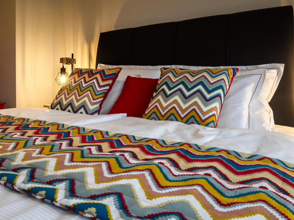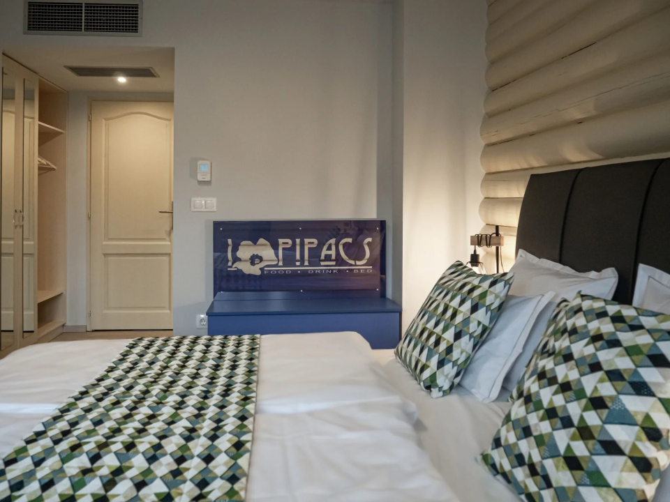 franciaágyas, légkondicionált, saját, zuhanyzós fürdőszobával, síkképernyős okos TV-vel és minibárral (hűtővel) felszerelt.