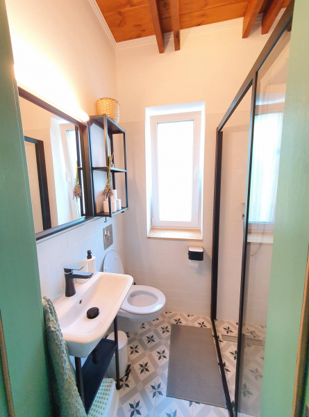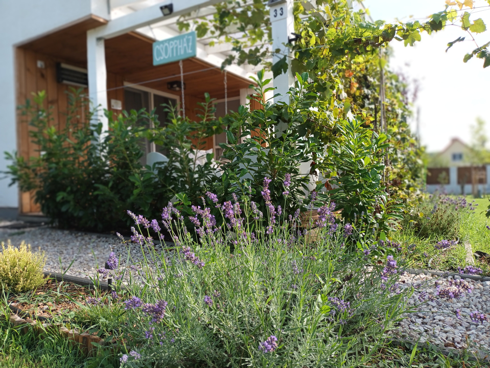 A kertben fedett terasz, tűzrakóhely, szauna, játszótér, vendégeink számára gondozott idényzöldségekkel ültetett magaságyás található. Tökéletes hely gyerekes családok számára, akik szeretnének kicsit a hétköznapok zsivalyából kiszakadni, és a tücskök muzsikájára pihenni. A vízparttól elég távol van, hogy ne legyen zavaró a nyüzsgés, viszont elég közel, hogy ha mégis szeretnénk jó éttermet, pékséget találni vagy aktív pihenésre vágynak akkor egy kb 20 perces sétával elérhető legyen.