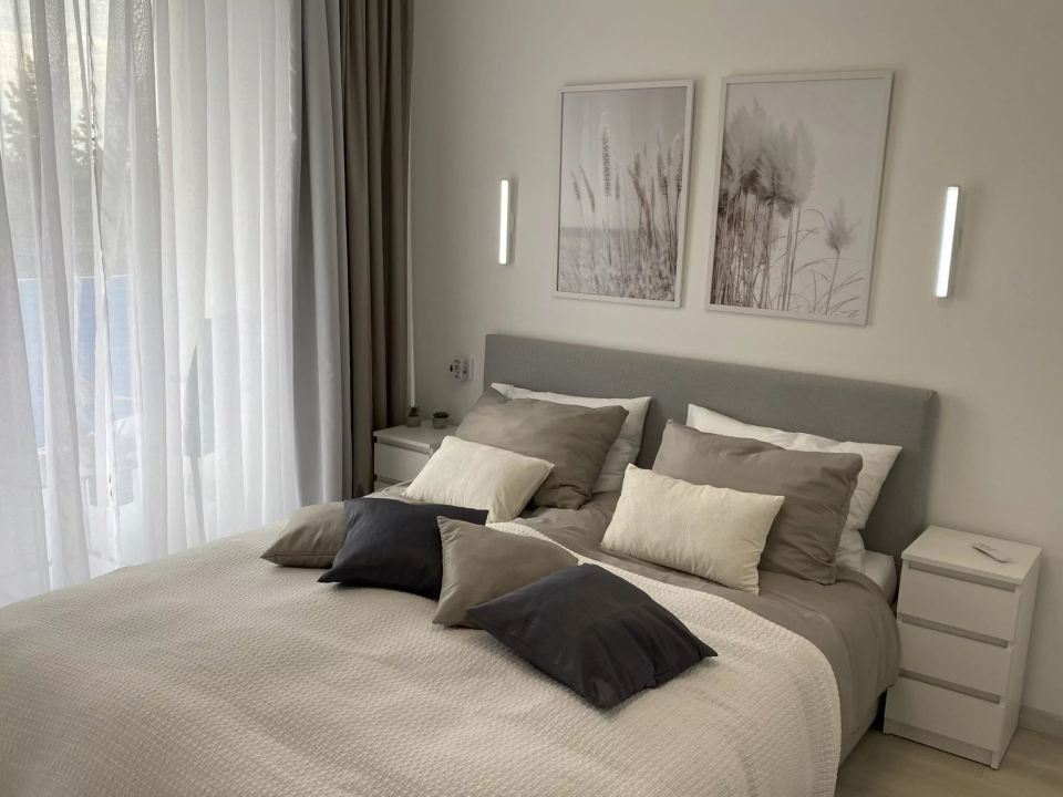 Egy hálószobás teljesen berendezett sarokapartman (40 m2) a második emeleten, erkéllyel (6 m2).