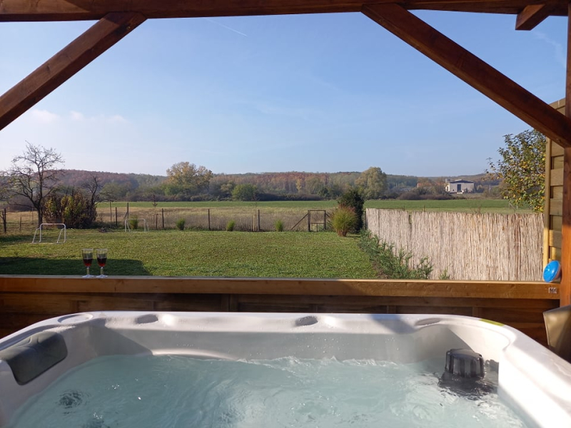 A kültéri, de mégis fedett jakuzzi egész évben, felár ellenében igényelhető szolgáltatás.